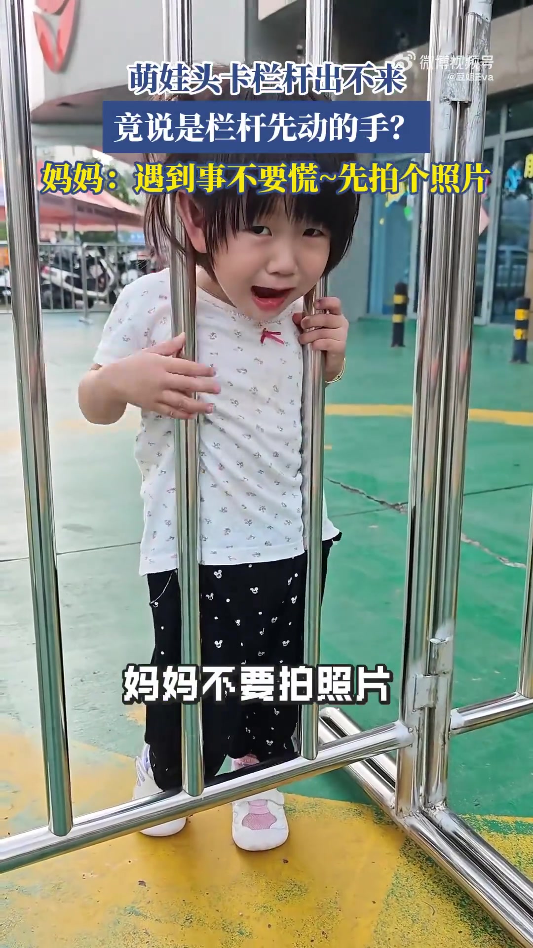 萌娃头卡栏杆难脱身,戏称栏杆“先动手”