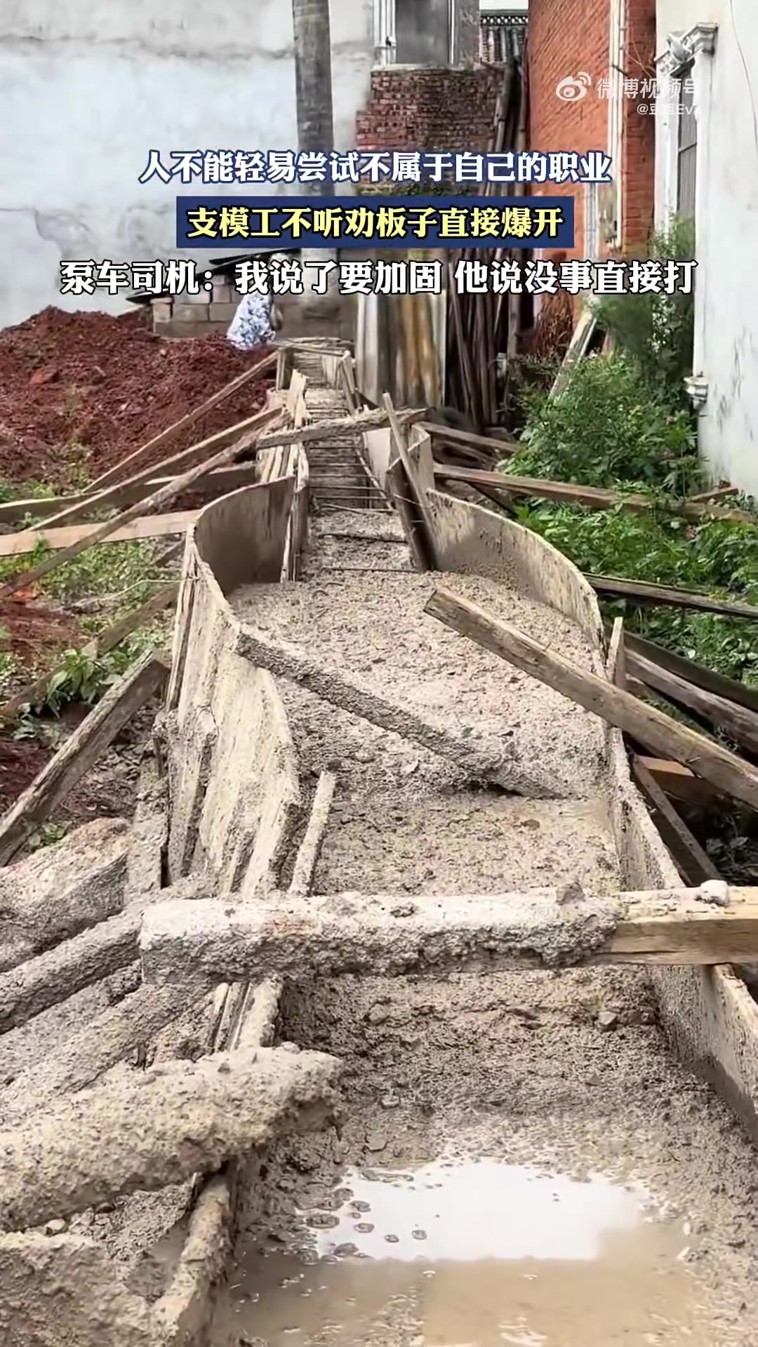 人莫轻易试非己职业,支模工不听劝板子爆开