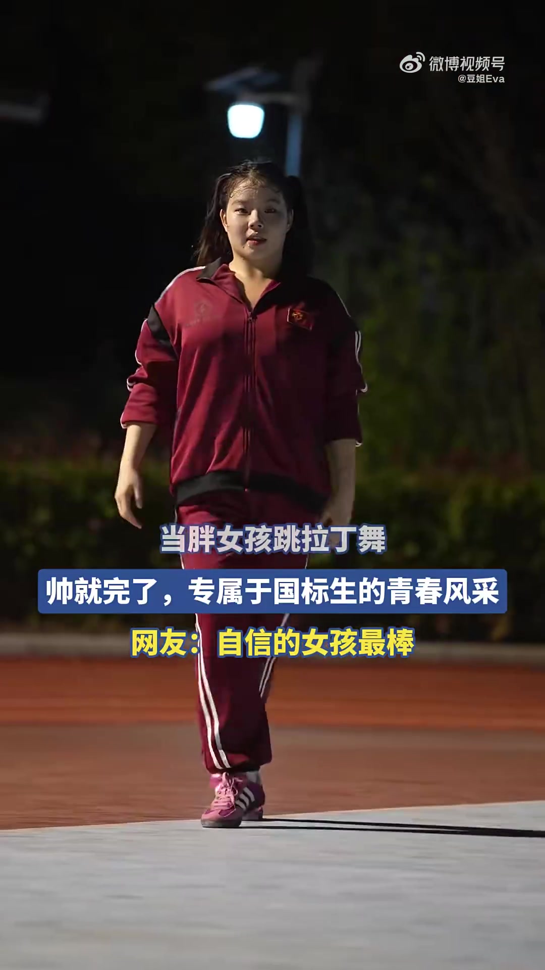 胖女孩跳拉丁舞,尽显国标生的青春帅气风采